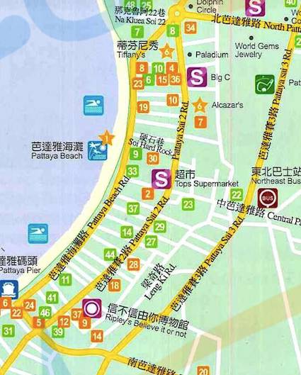 这里就是所谓的芭提雅市中心了,也是芭提雅最繁华的区域。历史上,越战时期美国大兵登陆后,开始修建度假中心。于是,芭提雅先有了步行街,再有海滩路(芭提雅一路),然后从海滩路向东,又有了芭提雅二路、芭提雅三路。