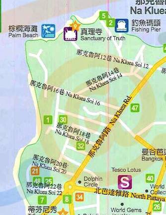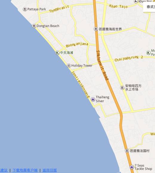 芭提雅南区其实就是在帕山以东,芭提雅中心区以南,素坤逸路以西的一个小区域。之所以特别划出这个南区,主要是这个区域有一条非常重要的塔帕亚路(Thappraya Road),是中心区与中天区的唯一必经之路,路上有对行的双条车,算是咽喉要道了。