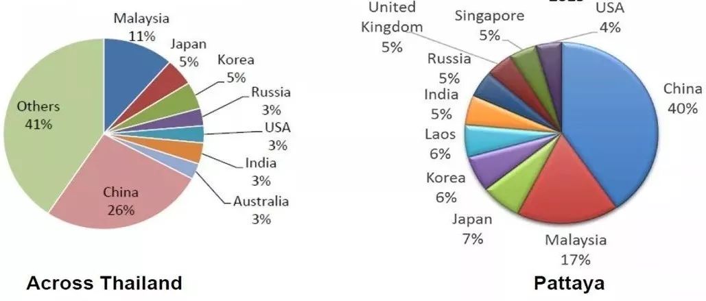 泰国游客国际分布中,中国已经成为第一大群体,(下图为泰国旅游局2015年数据)且每年大幅增长,2016年已经达到887万人次,2017年预计增长仍在5%以上。